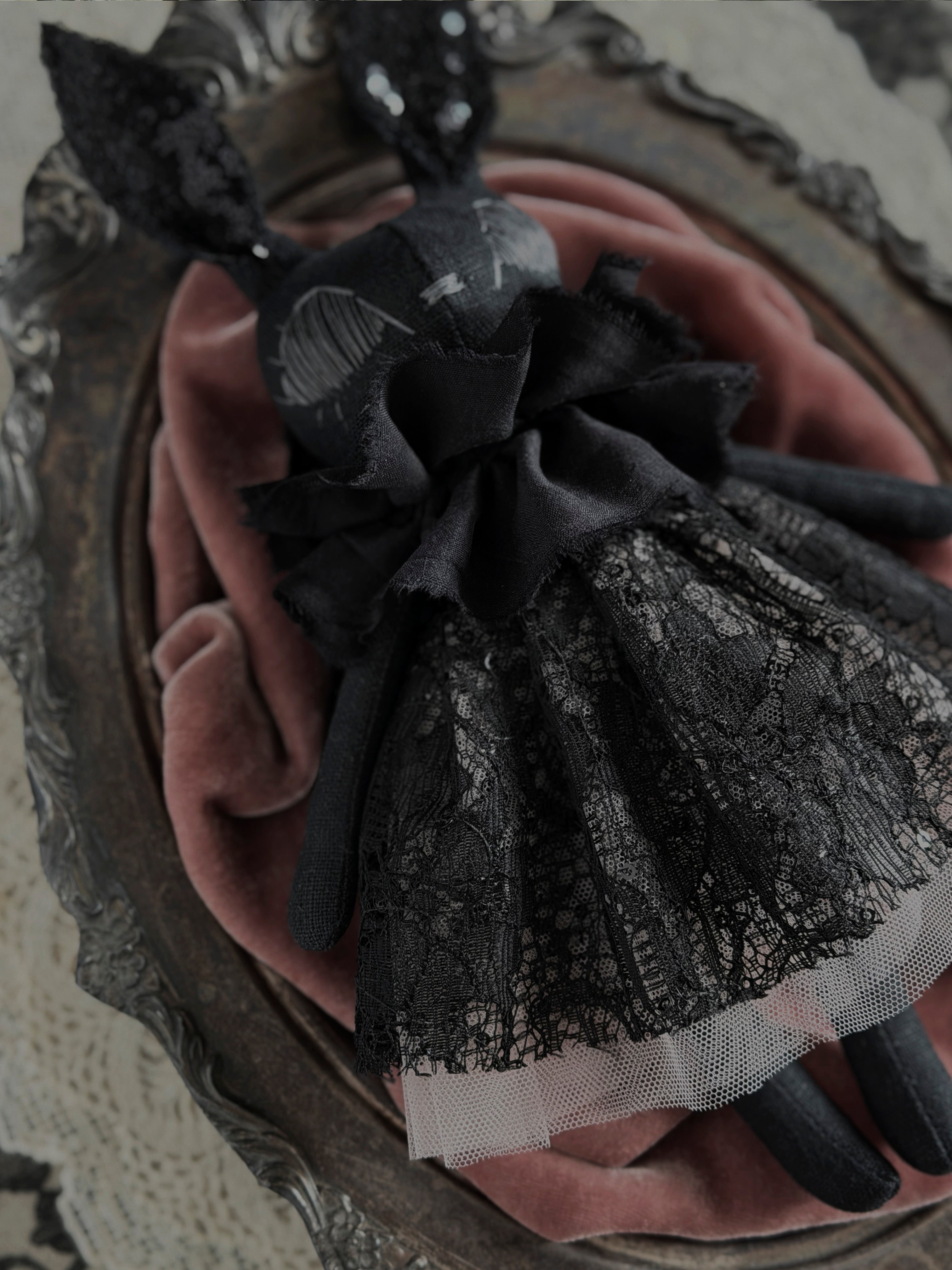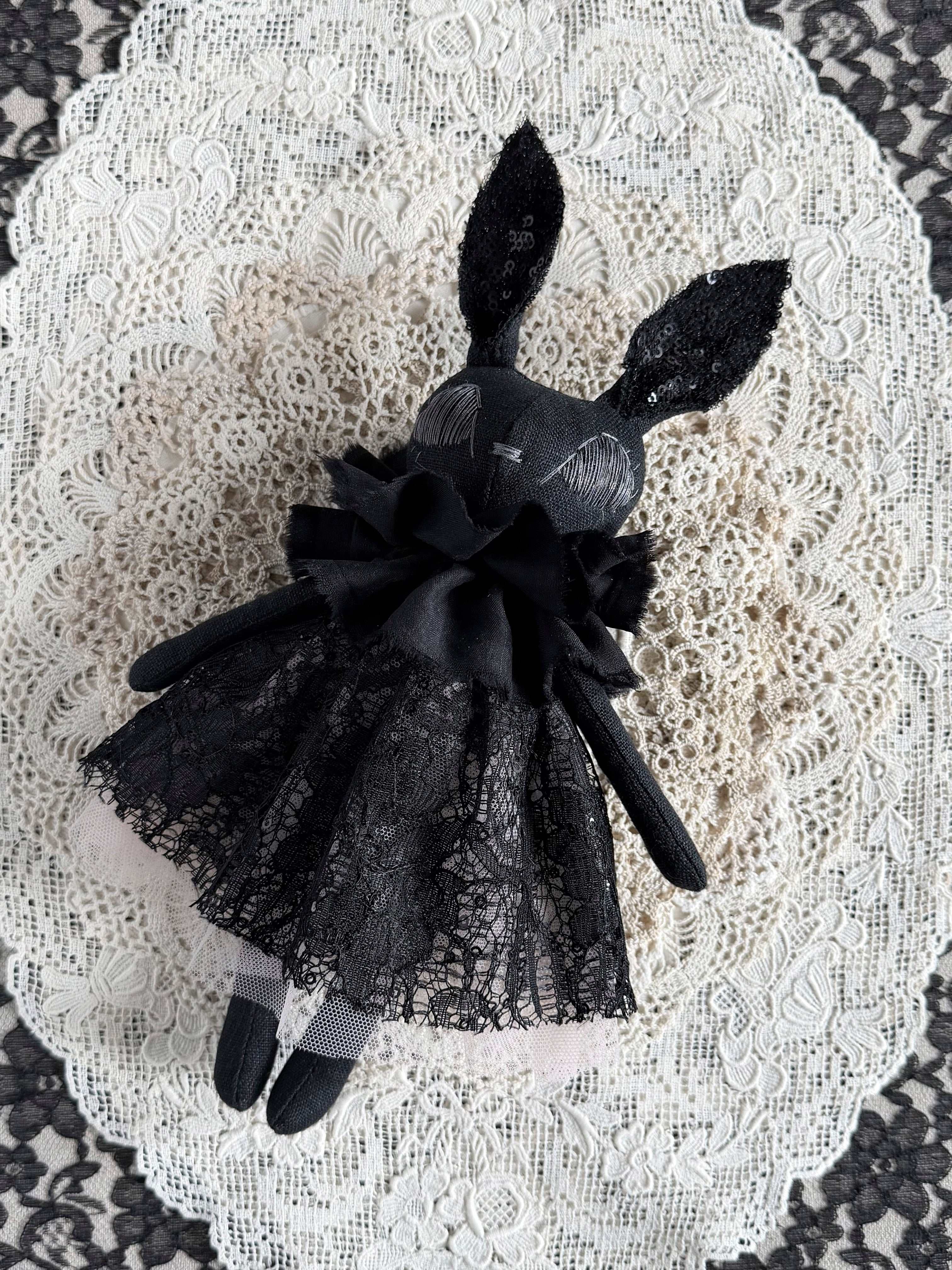 The Couture Sparkle Collection showcases layers of different fabrics both old and new. This bunny loves nature, magical adventures, cuddles, tea parties, and all things spooky.